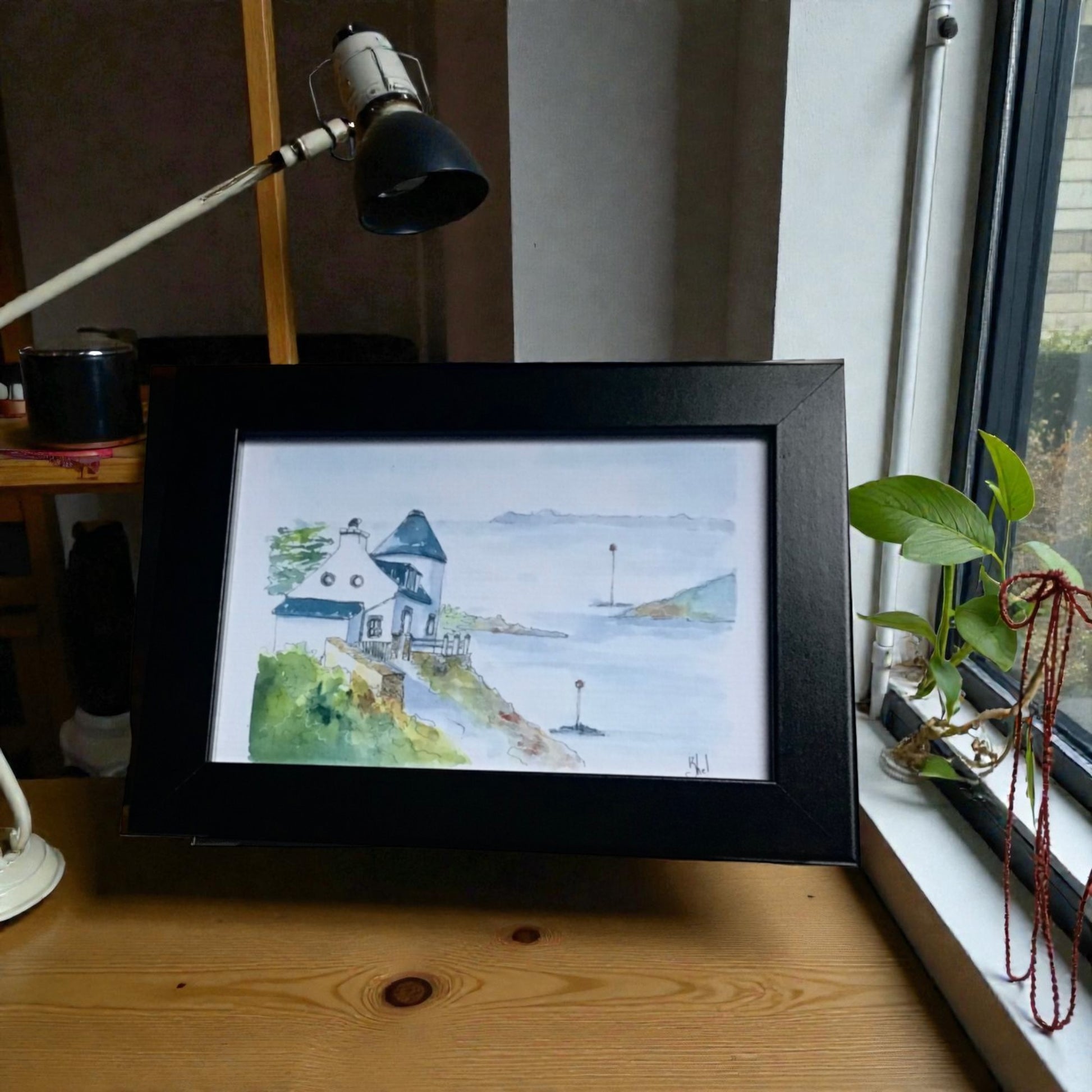 "Se rendre au port du Bas-Pouldu à Clohars-Carnoët, plus longtemps la mer en empruntant le sentier côtier, se laisser bercer par le bruit du vent et des vagues, s'asseoir sur le banc face à la mer, puis reprendre la promenade vers la maison du Mât Pilote, et continuer le chemin pour se remplir les yeux du bleu de l'Océan !"
