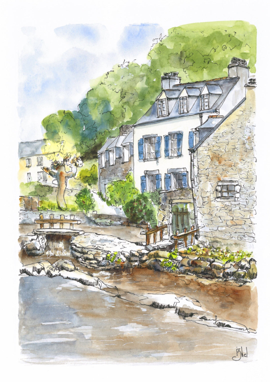 Se rendre à Pont-Aven et se garer tout au bout du quai Théodore Botrel. Longer tranquillement l'Aven en écoutant le clapot de la marée qui remonte...puis s'arrêter au Moulin du Grand Poulguin, admirateur sa roue et l'Aven qui s'agite autour du Moulin du Petit Poulguin"