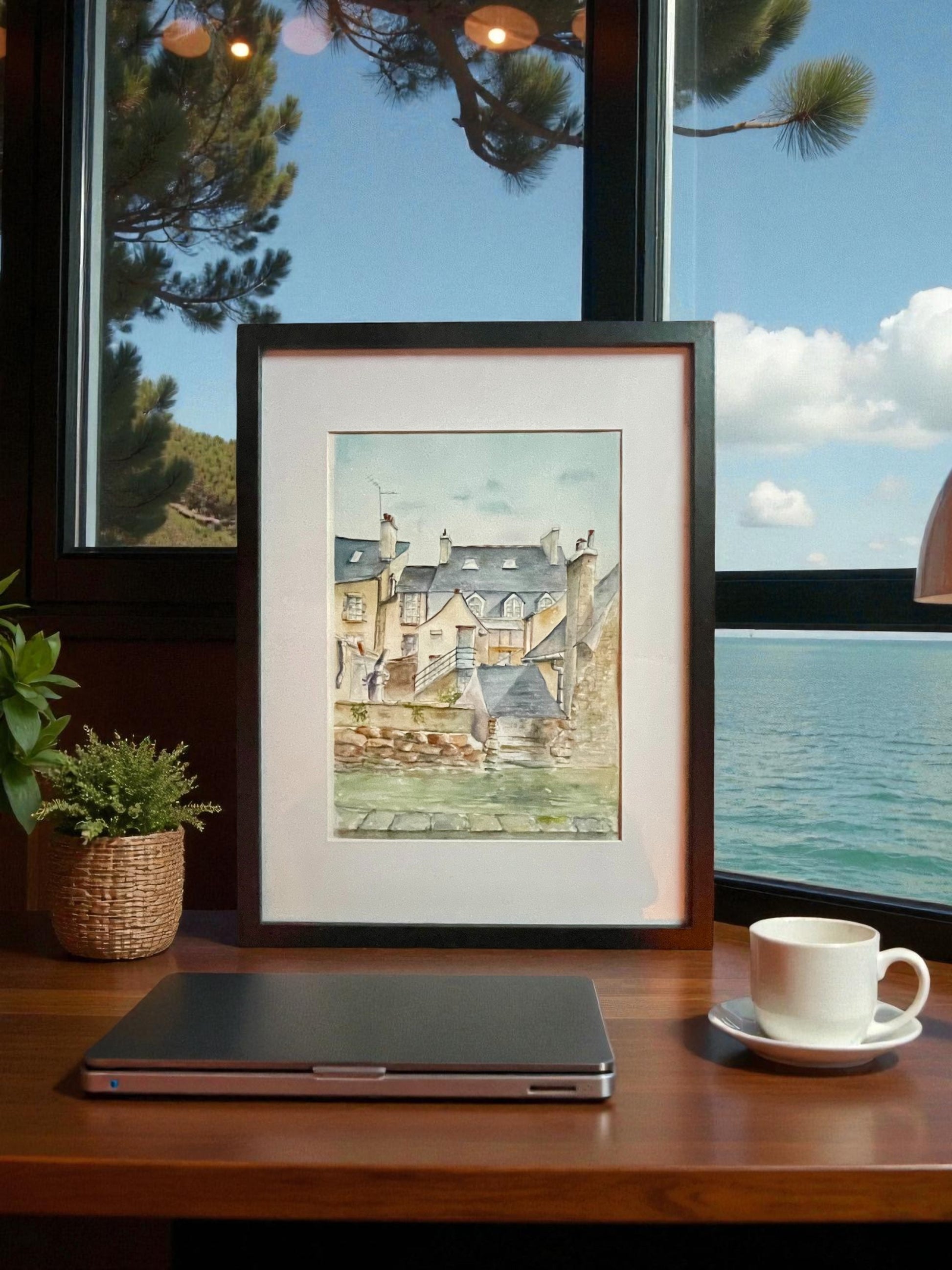 Oeuvre originale au format A4 sur papier aquarelle 300 gr livrée non encadrée avec son certificat d'authenticité
